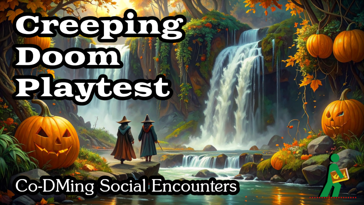 Dan & Paul give a postmortem on running their fourth Dungeon Design Dash product, Creeping Doom of the Pumpkin King, in a co-DM fashion. It’s their first DDD wilderness adventure, and surprises abound! What happens when the party pursues mostly social encounters with a dedicated Adversary DM? Can two DMs swap out musical-chairs NPCs without going crazy? Does D&D always revert back to its horror roots?